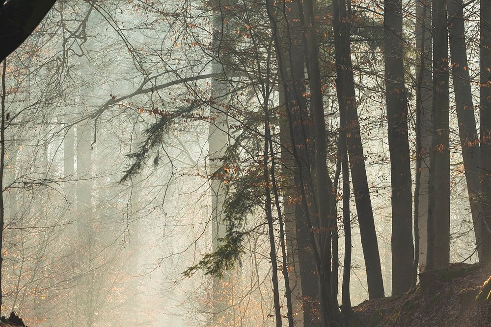 Eine schön beleuchtete Waldallee in der Nähe der Posbank.