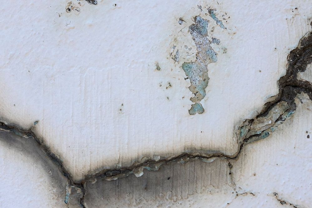 Detail und Nahaufnahme eines Risses in einer alten Mauer. Crack ist voll von bunten Akzenten.