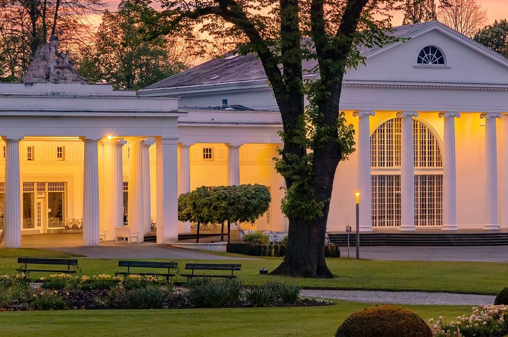 Der Kurpark von Bad Oeynhausen ist eine große Parkanlage in der Stadt mit einer Reihe von schönen Gebäuden. Er wurde in der Mitte des 19. Jahrhunderts angelegt. Hier kann man herrlich spazieren gehen, die Außenterrasse des Kaiserpalais Kurhaus genießen und Aufführungen im Theater besuchen. Es gibt mehrere Gebäude, in denen man ins Wasser gehen kann.