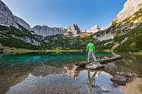 Wanderer am malerische Seebensee im Mieminger Gebirge, Tirol, Österreich
