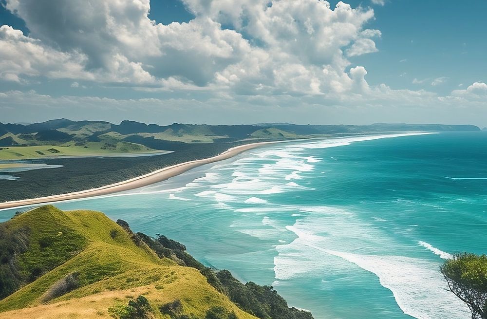 Bestelle dieses Landschafts-Wandbild Wandern an Neuseelands Küste von fernlichtsicht als Reproduktion auf Leinwand, Alu-Dibond, als Poster, Fototapete oder Acrylglasbild.