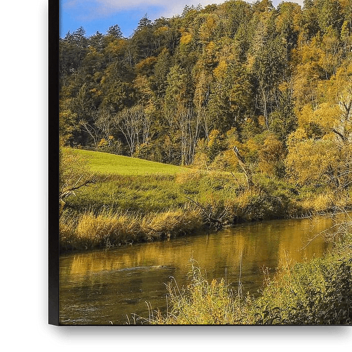 Bestelle das Foto Wanderweg entlang der Donau unterhalb des Stiegelesfelsen bei Fridingen an einem Herbsttag - Naturpark Obere Donau von BlattArt - Christine Horn als Reproduktion auf Leinwand, Alu-Dibond, als Poster, Fototapete oder Acrylglasbild.