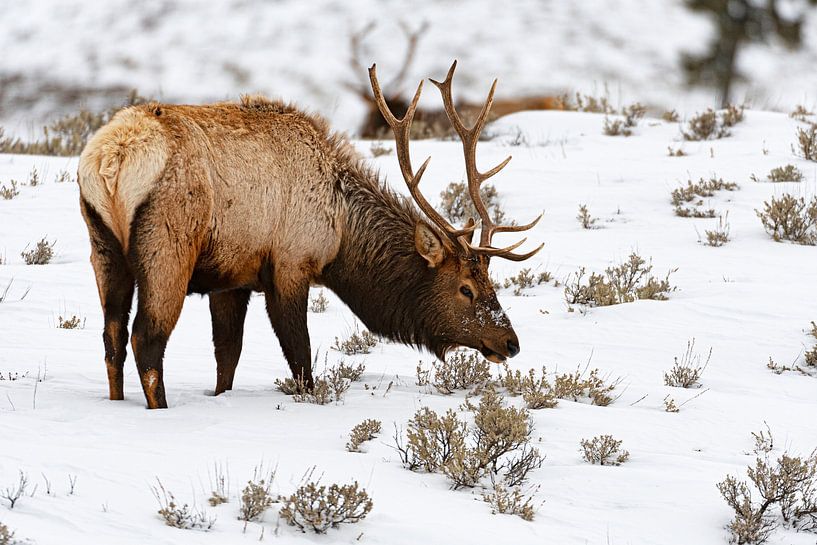 Bestelle das Foto Wapiti (Cervus canadensis) Yellowstone von Dick Hoogenboom als Reproduktion auf Leinwand, Alu-Dibond, als Poster, Fototapete oder Acrylglasbild.