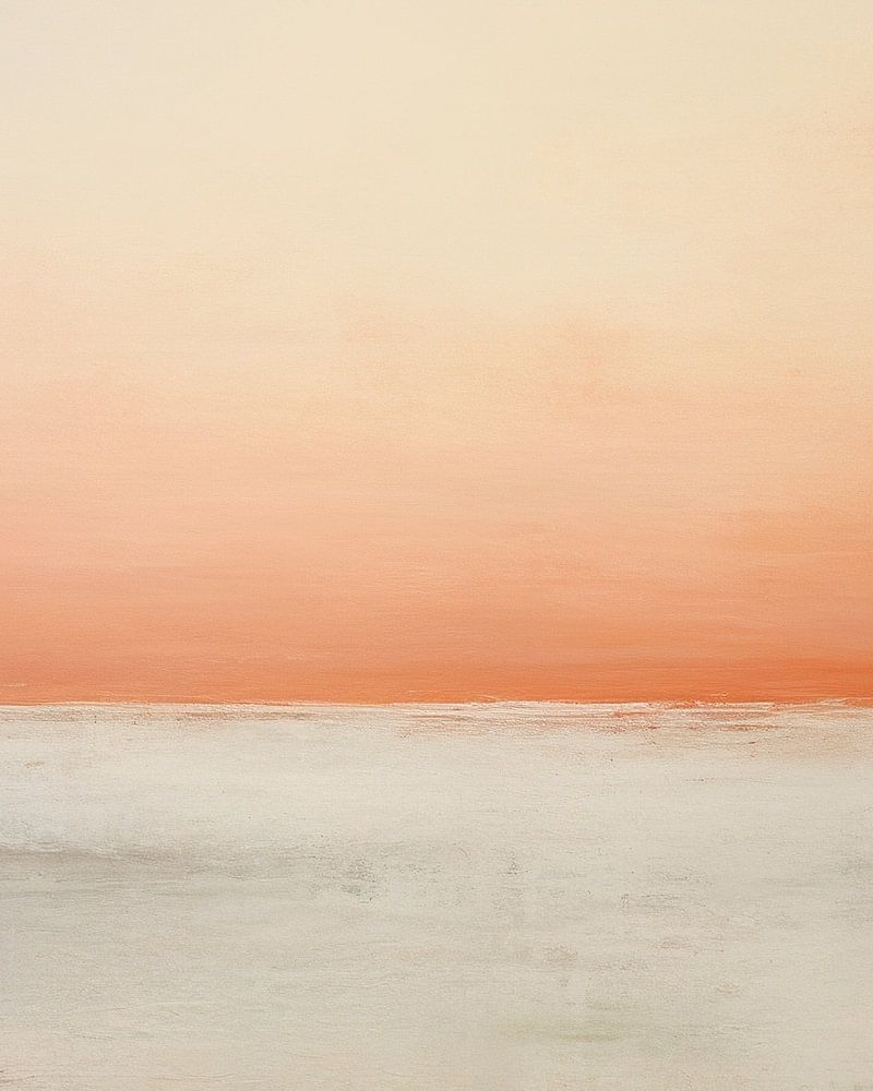 Warmer Übergang - Dieses heitere Gemälde umarmt den Minimalisten mit seinen weichen Abstufungen, die nahtlos von einem warmen Pfirsichflaum-Horizont zu ruhigen neutralen Tönen übergehen. Die subtile Textur bereichert die abstrakte Landschaft, perfekt für einen Hauch von Raffinesse in einem modernen Interieur.