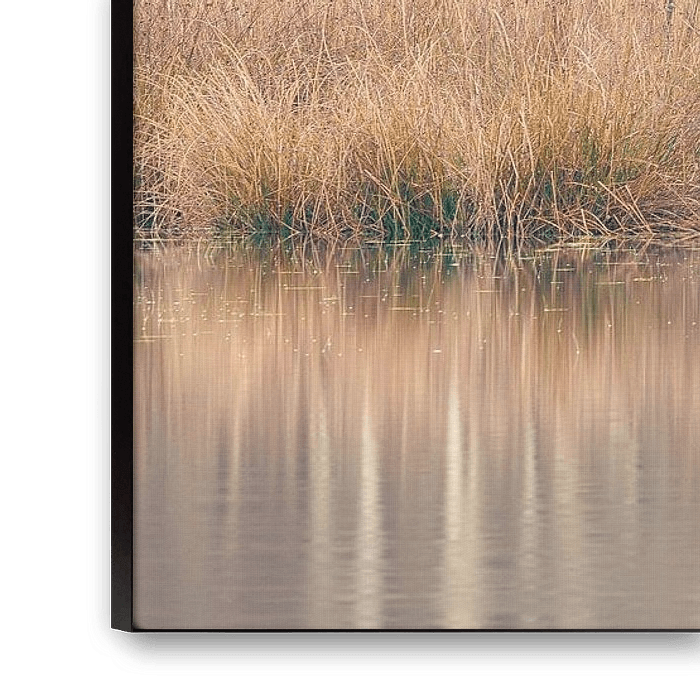 Auch der Winter bietet schöne Farben. Die Birkenstämme und die Pfeifenstrohhalme, die ein schönes Spiegelbild im Wasser des Leersumer Feldes ergeben. An diesem schönen, kalten Wintertag im Januar herrscht eine ruhige Stille. Ein Panorama mit Atmosphäre und Farbe.