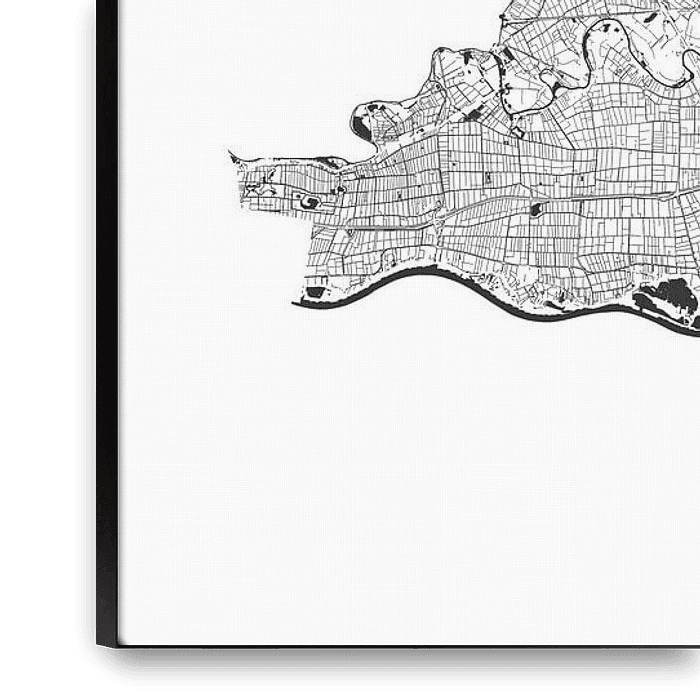 Bestelle dieses abstrakte Wandbild Wasserkarte der Betuwe in Schwarz und Weiß von Maps Are Art als Reproduktion auf Leinwand, Alu-Dibond, als Poster, Fototapete oder Acrylglasbild.