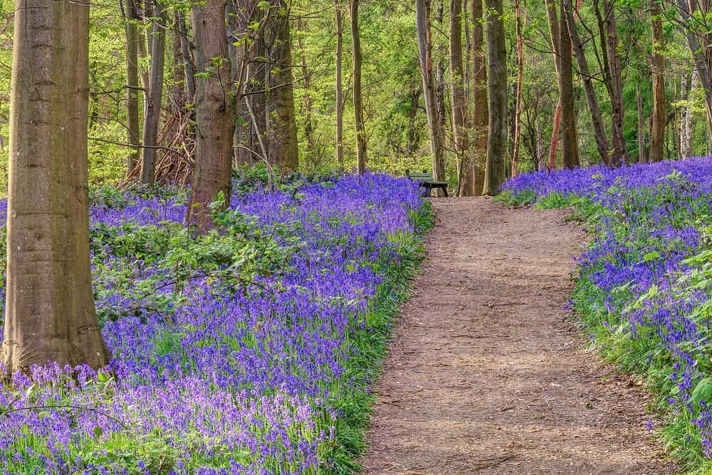 In der Nähe von Hückelhoven im Kreis Heinsberg im Rheinland befindet sich der in Deutschland einzigartige "Wald der blauen Blumen". Jedes Jahr im Frühjahr ist der Waldboden von unzähligen blau blühenden Hasenglöckchen bedeckt, bis das Laub der Buchen zu dicht wird und sie schließlich verblühen.