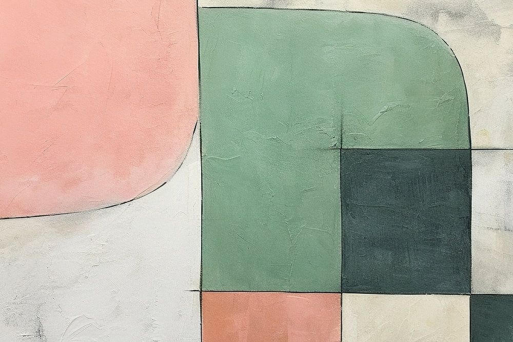 Details: abstrakt, Geometrie, rosa, grün, beige, schwarz, ruhig, modern, zeitlos, Komposition, Japandi