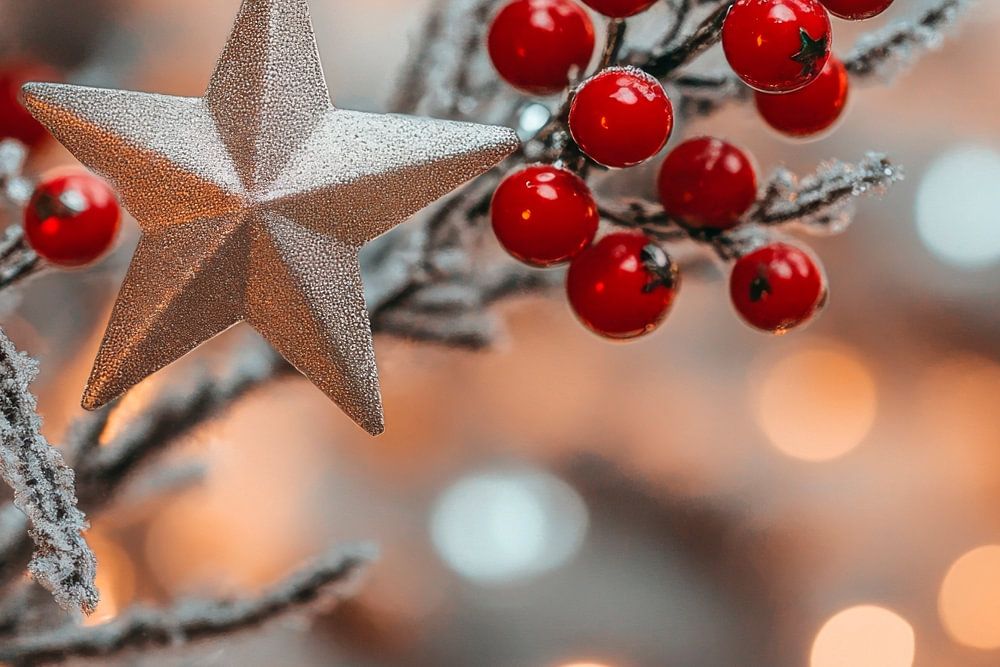 Leuchtende Beeren und ein schimmernder Stern verleihen dieser winterlichen Szenerie einen Hauch von Magie. Die sanften Lichter im Hintergrund schaffen eine wohlige Atmosphäre, die zum Verweilen einlädt. Perfekt geeignet für das Wohnzimmer, bringt es festlichen Glanz und Wärme in die Herzen der Bewohner. Ideal für gemütliche Abende im Kreise der Familie.