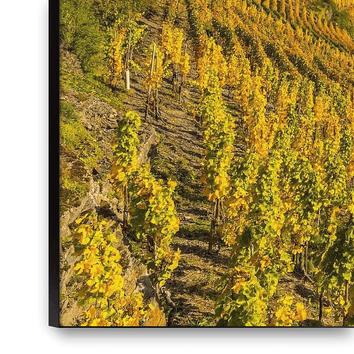 Bestelle das Foto Weinberge im Herbst, Mayschoß, Ahrtal von Walter G. Allgöwer als Reproduktion auf Leinwand, Alu-Dibond, als Poster, Fototapete oder Acrylglasbild.