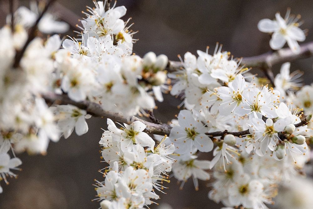 Weiße Blüte im Vorfrühling fotografiert. Der Beginn des Frühlings. Weiß mit Braun.