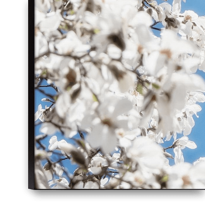 Bestelle dieses Blumen-Wandbild Weiße Blüten der Magnolie blühen im Frühling von Jessica Berendsen als Reproduktion auf Leinwand, Alu-Dibond, als Poster, Fototapete oder Acrylglasbild.
