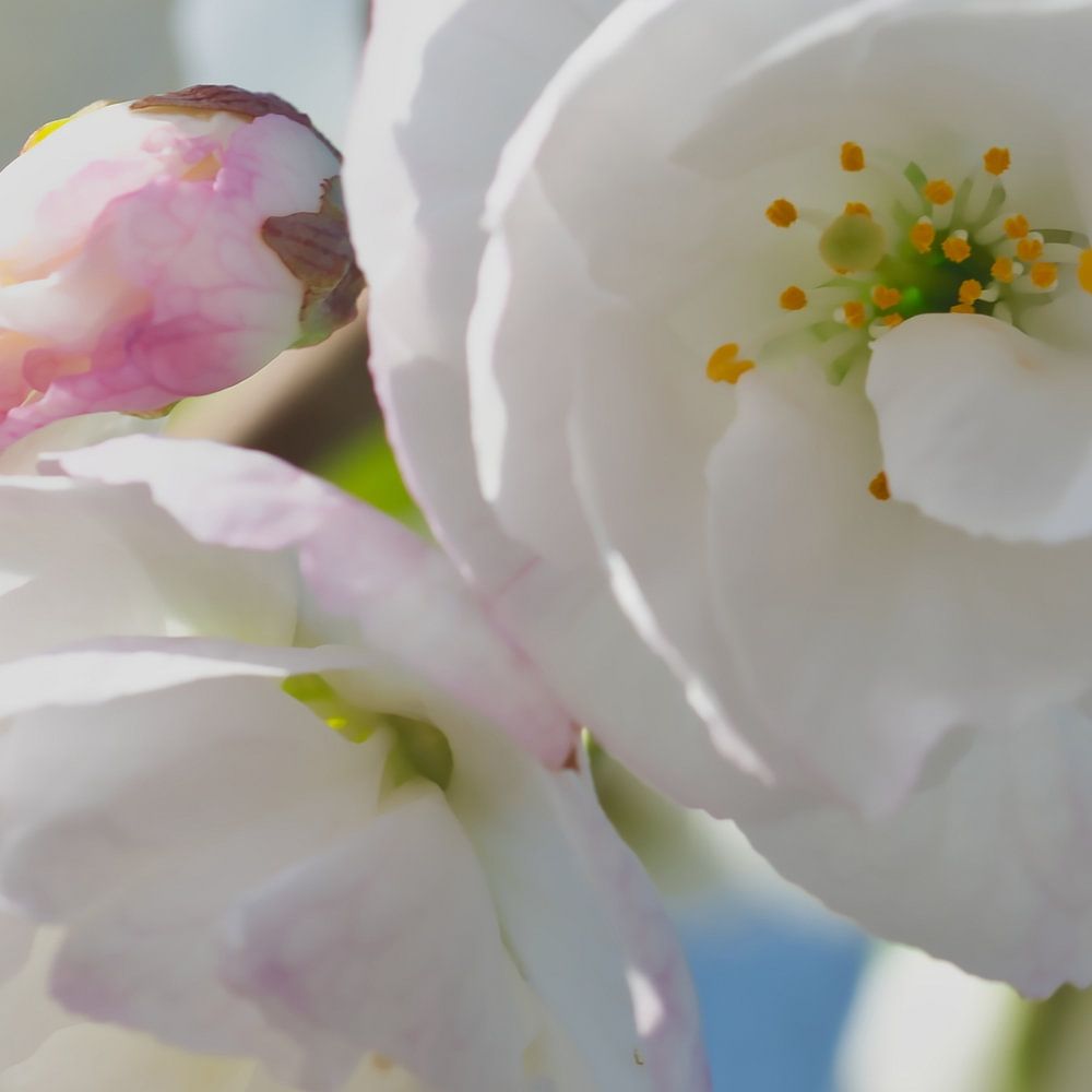 Auf diesem gezoomten Foto mit einem Makroobjektiv habe ich die Blüten so nah herangeholt, dass die bunten Stempel dieser Blume einen schönen Kontrast zur weißen Blüte bilden. Ich freue mich immer, wenn ich diese Blumen im Frühling sehe, weil ich dann weiß, dass das schöne wärmere Wetter kommt und alles draußen wachsen und blühen wird.