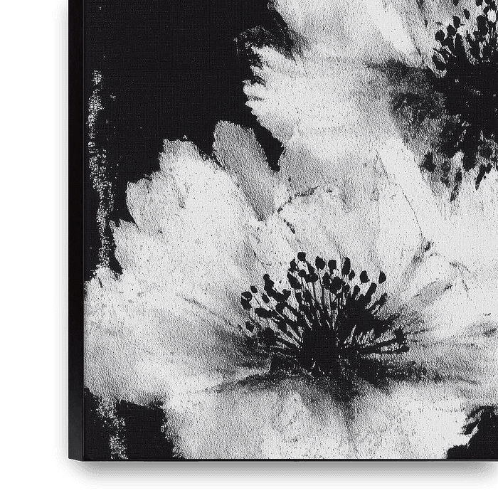 Bestelle diese Malerei Weiße Blumen auf schwarzem Hintergrund von Chromatic Storm Studio als Reproduktion auf Leinwand, Alu-Dibond, als Poster, Fototapete oder Acrylglasbild.
