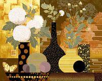 Details: Blumen, Vase, Schmetterling, moderne Kunst, Gold, Schwarz, Weiß,…
