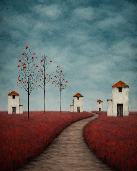 Bestelle dieses Landschafts-Wandbild Weiße Häuser von vincenzomarzocchiartist als Reproduktion auf Leinwand, Alu-Dibond, als Poster, Fototapete oder Acrylglasbild.