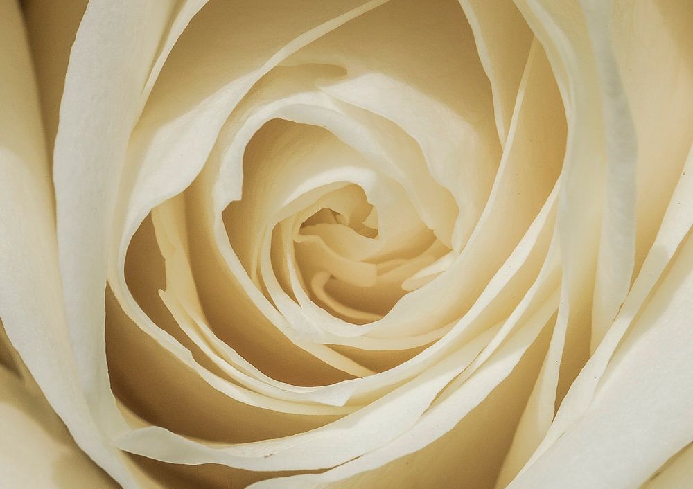 Foto einer schönen weißen Rose in Nahaufnahme. Rechteckiger Schnitt, auf Anfrage auch in schwarz und weiß erhältlich.