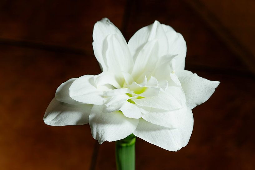 Bestelle dieses Blumen-Wandbild Weiße doppelte Narzisse blüht vor dunklem Hintergrund von de-nue-pic als Reproduktion auf Leinwand, Alu-Dibond, als Poster, Fototapete oder Acrylglasbild.