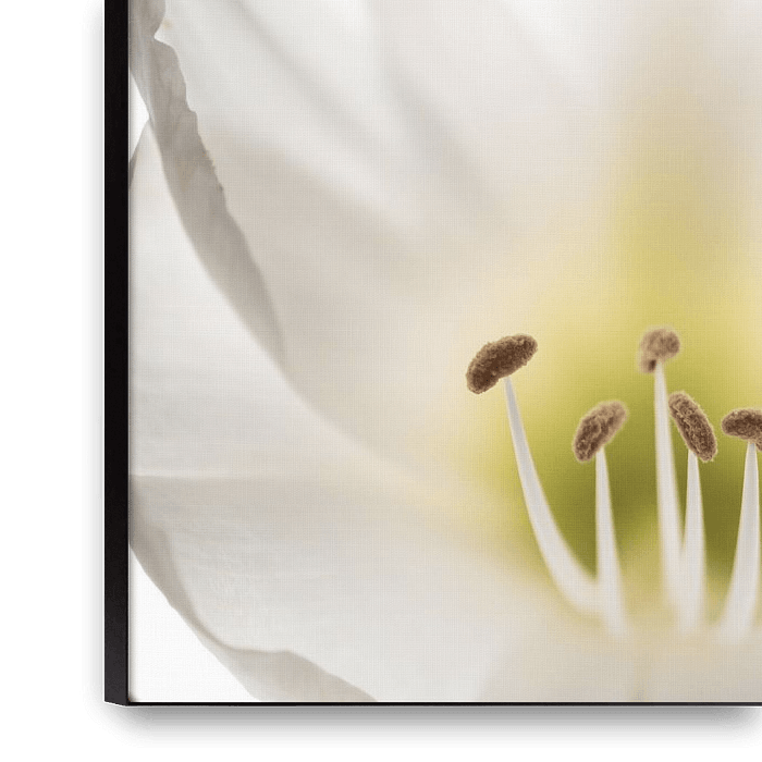 Ein stilvolles, ruhiges Bild einer schönen Amaryllus. Diese weiße Blume mit ruhigen Farbtönen sorgt für ein nicht zu präsentes Bild an der Wand.