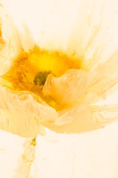 Weißer Mohn in kristallklarem Eis, orange koloriert