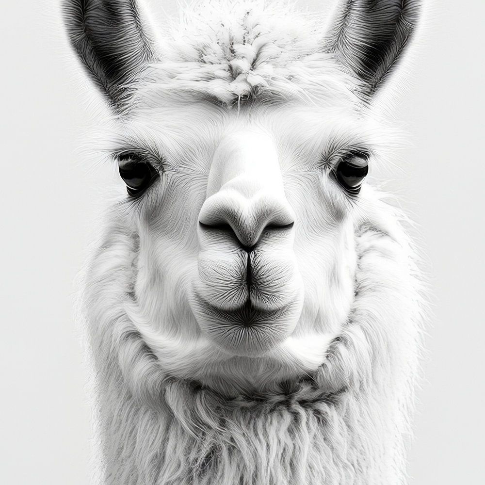 Ein charmantes Lama mit sanften, neugierigen Augen und flauschigem, weißen Fell strahlt eine friedliche Gelassenheit aus. Seine majestätische Präsenz und der vertraute Ausdruck verleihen jedem Raum eine charmante Note. Perfekt für das Wohnzimmer, um eine warme und einladende Atmosphäre zu schaffen, oder als fröhlicher Akzent im Büro.