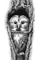 Über „Weitäugige Eule in Baumhöhle Linienkunst“ von NAIME ATELIER