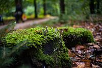 Eine dieser besonderen Arten, die man in der Natur findet. Pilze können die seltsamsten Formen annehmen und dieser Geweihpilz ist ein schönes Beispiel dafür, schön zwischen dem grünen Moos auf einem verrottenden Baumstamm. Eine typische Herbst-Szene