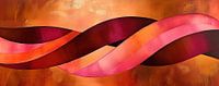 Wellen | Rosa und Bordeaux Wellen – Dies ist ein abstraktes Gemälde mit breiten, wellenförmigen Bändern, die in warmen Orange-, Rosa- und Bordeaux-Tönen über einen kupferfarbenen Hintergrund verlaufen, abstraktes Gemälde, Gemälde abstrakt.