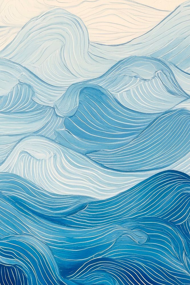 Sanfte Wellen in harmonischen Blautönen, die sich elegant über die Leinwand winden, vermitteln ein Gefühl von Ruhe und Weite. Die geschwungenen Linien erzeugen eine fast hypnotisierende Bewegung, ideal für das Schlafzimmer, wo sie eine entspannende Atmosphäre schaffen und zum Träumen einladen.