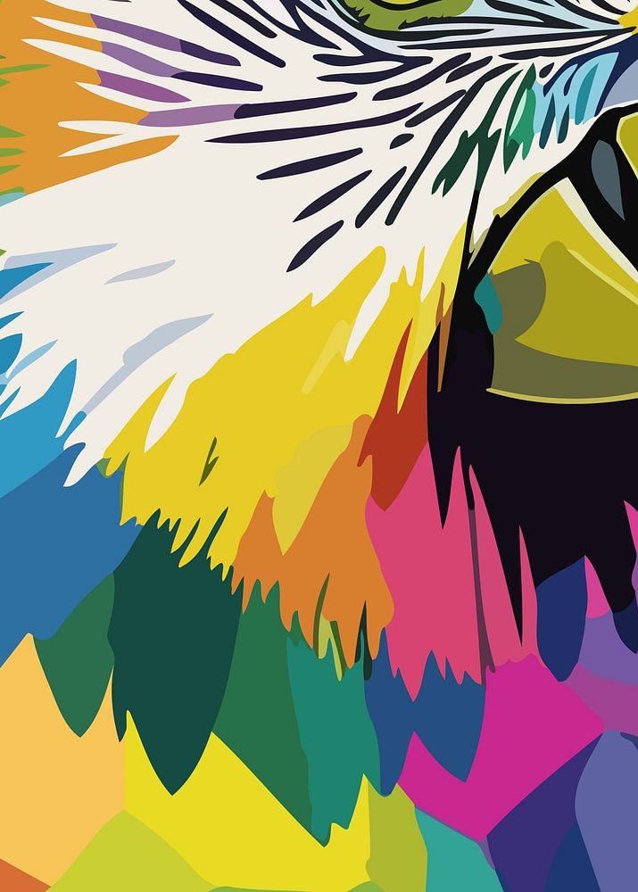 Bestelle dieses Vögel Wandbild Wellensittich-Sittich Pop Art Stil von MIROKKU als Reproduktion auf Leinwand, Alu-Dibond, als Poster, Fototapete, ArtFrame oder Acrylglasbild, maßgefertigt in höchster Qualität.
