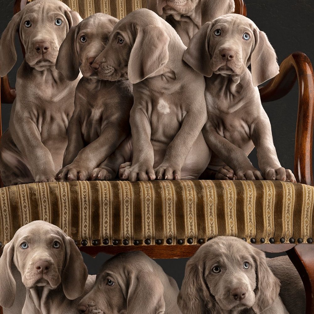 Die Hunde auf diesem Foto sind Weimaraner-Welpen. Dieses Foto ist aus der Fine Art Serie.