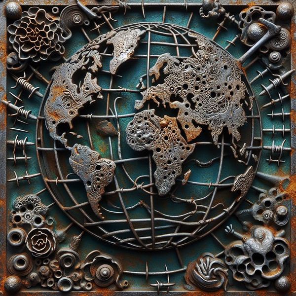 Bestelle das digitale Kunst Bild "Welt aus Gusseisen" von Knoetske von Knoetske als Reproduktion auf Leinwand, Alu-Dibond, als Poster, Fototapete oder Acrylglasbild.
