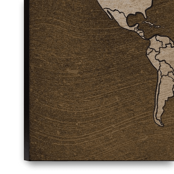 Eine umrissene Weltkarte mit den Kontinenten Europa, Afrika, Asien, Amerika und Australien. Braun-goldene Erdtöne im Vintage-Look: Weltkarten wecken Erinnerungen an Reisen, aber auch Träume vom nächsten Urlaub oder der nächsten Fernreise. Ob zu Hause oder im Büro, eine Weltkarte als Wanddekoration sorgt für Gesprächsstoff. Mit einer…