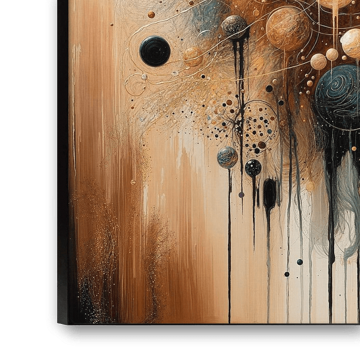 Tauchen Sie ein in die kosmische Pracht dieses abstrakten Werks, in dem Planeten und Galaxien durch ausdrucksstarke Ölfarbenformen zum Leben erweckt werden. Kräftige Farben und runde Formen schaffen eine dynamische Komposition, die das Geheimnis und die Unendlichkeit des Universums heraufbeschwört. Diese einzigartige Kreation kombiniert organische Texturen mit kosmischen Themen und schafft so ein faszinierendes Bild, das die Schönheit und Erhabenheit des Weltraums widerspiegelt.