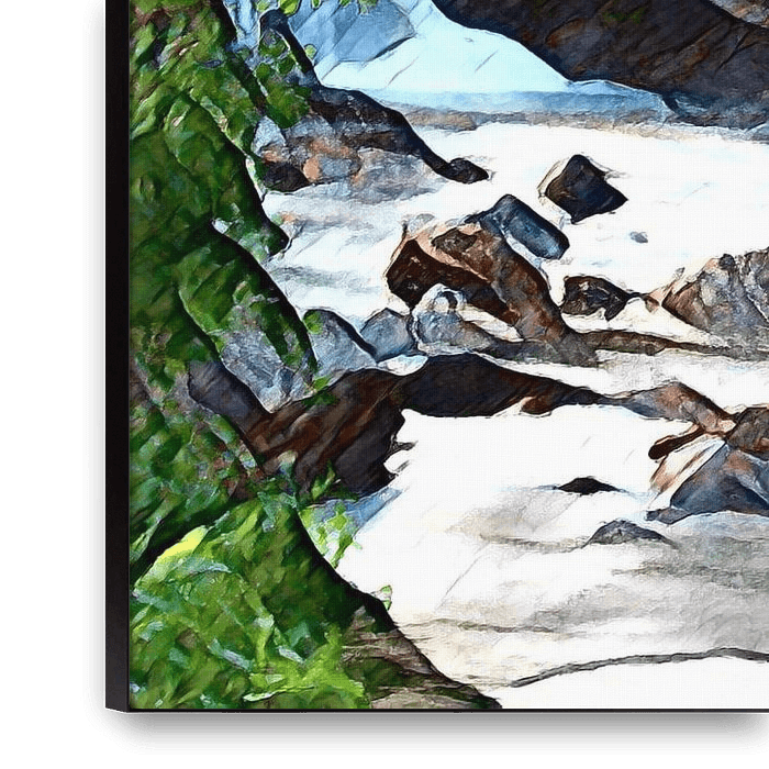 Ihre gewählte Kunst auf Leinwand, gespannt in einem Aluminiumrahmen. Schnell und einfach austauschbar für eine frische Ausstrahlung und ganz nach Ihren Wünschen.
