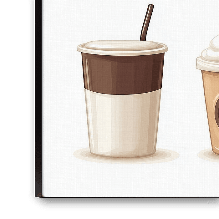 Nette illustrative Werbung für eine Kaffeebar oder einen Coffeeshop mit verschiedenen To-Go-Bechern auf weißem Hintergrund