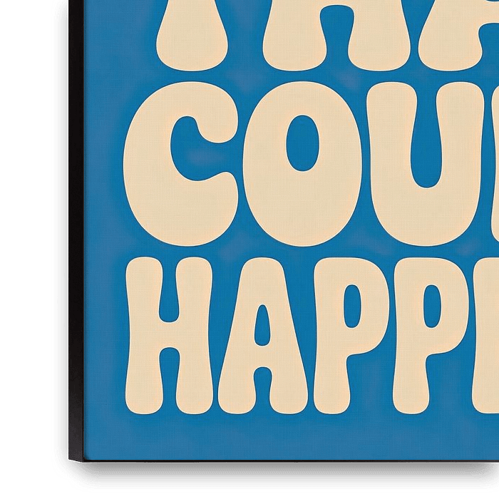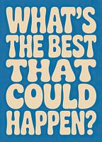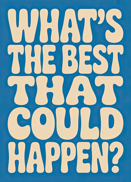 Ein motivierendes Poster-Design mit der Frage "What's The Best That Could Happen?" in auffälliger, abgerundeter Schrift auf einem leuchtend blauen Hintergrund. Das Design strahlt Optimismus und eine positive Lebenseinstellung aus, perfekt für inspirierende Wandkunst.