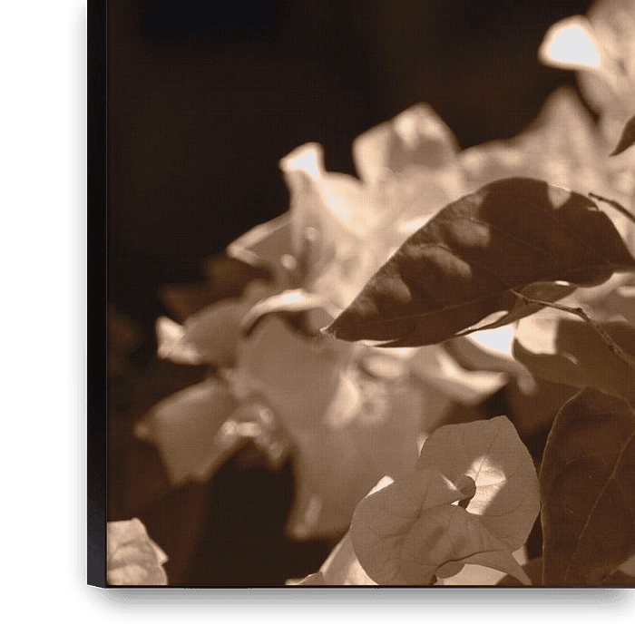 Bourgainvillea in sepia auf dunklem Hintergrund in Bali.