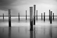 Posten im Meer. Eine lange Verschlusszeit führt zu einer Unschärfe des Wassers.