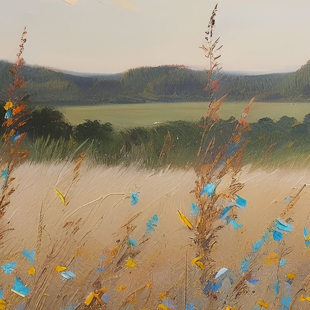 Öl-Illustration von bunten Wildblumen in einem Feld, mit schönen weichen Farben, die nicht fehl am Platz auf jeder Wand aussehen wird