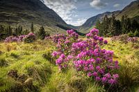 Wilde Rhododendron im Glen Etive, Highlands, Schottland, Großbritannien