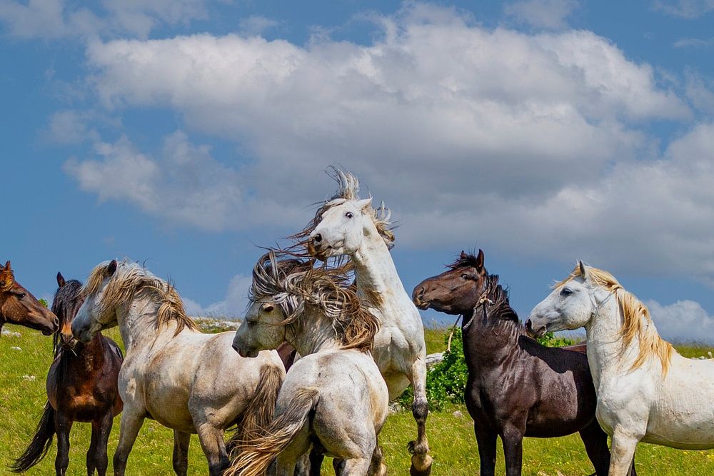 Die Wildpferde von Bosnien-Herzegowina bei einem Streit.
