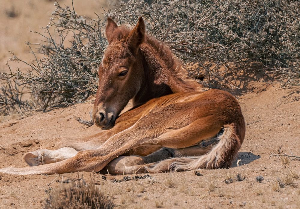 Wildpferdfohlen in Garub in Namibia, Afrika