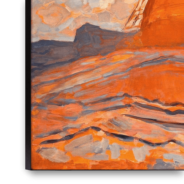 Ihre gewählte Kunst auf Leinwand, gespannt in einem Aluminiumrahmen. Schnell und einfach austauschbar für eine frische Ausstrahlung und ganz nach Ihren Wünschen.