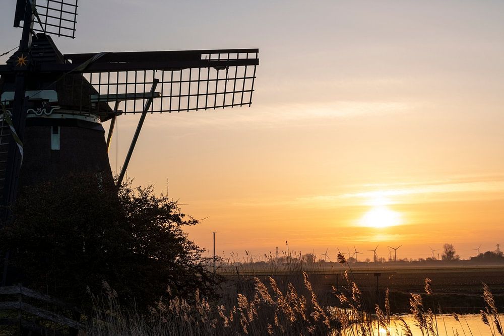 In der Nähe von Oudesluis in Nordholland steht diese Windmühle eingebettet in Tulpenfeldern.