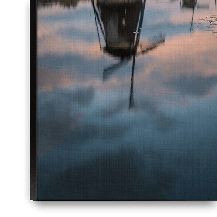 Dieses Bild des Kinderdeichs mit seinen schönen Windmühlen wurde nach einem Regentag aufgenommen. Die Sonne kam, bevor er unterging, und gab den Wolken eine schöne Farbe! Das Spiegelbild im Wasser war ein zusätzliches Geschenk.