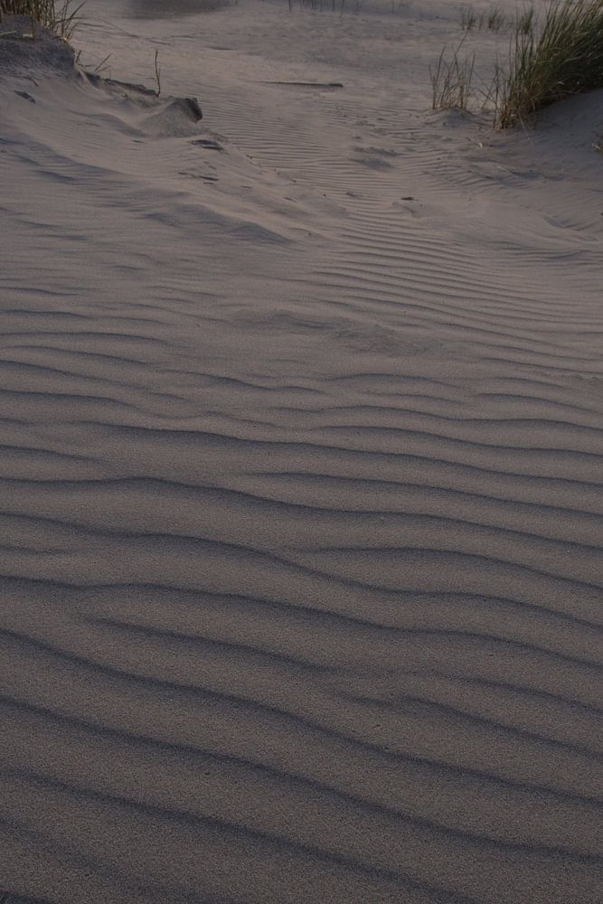 Die Dünen sind durch Sandverwehungen entstanden. Der Wind hinterlässt seine Spuren in Form von Erhebungen. Kurz nach Sonnenuntergang bietet das gleißende Licht ein schönes Relief.