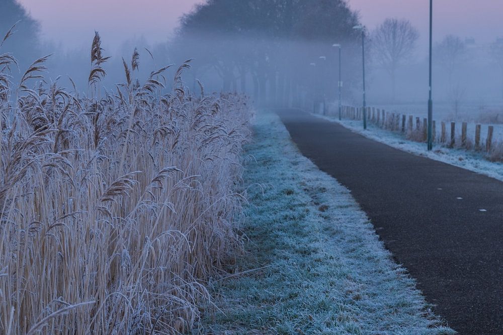 Valleikanaal in Leusden so schön mit dem aufsteigenden Nebel und Raureif