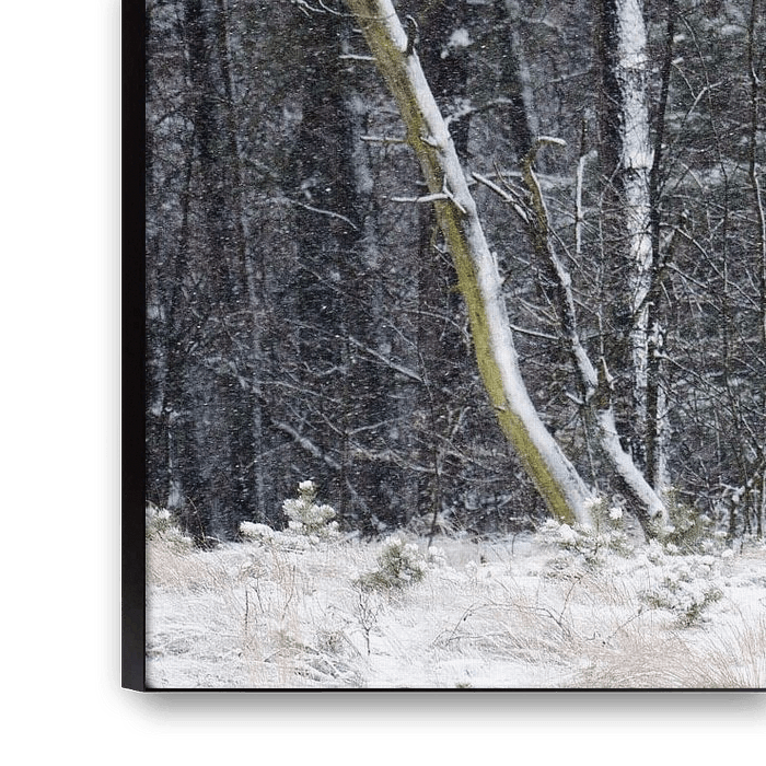 De sneeuw, tegen de takken gesmeten, zorgt voor een mooi contrast met de omgeving.
