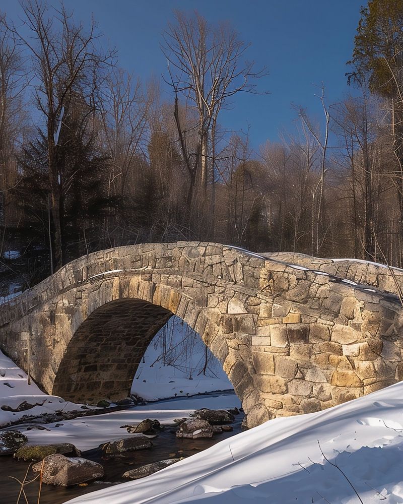 Winterbrücke in verschneitem Wald